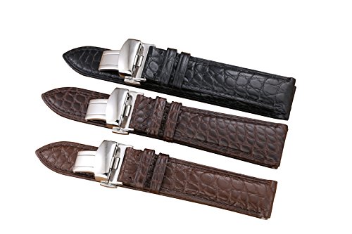 -. Feature : Width on the watch end: 20mm length: 2.95 inch+4.72 inch. When fastened together, total length is from 5.4 inch to 7.1 inch and plus your watch case length to see if it fits your wrist or not. Please also check the last Photo for size guide. / The upper side is made of 100% genuine crocodile skin from South Africa. It¡¯s famous for its firm texture and long-lasting durability. We also kept the natural grid of alligator grain without too much modification. The more you use it, the glossier it will become. The lining is made of waterproof Italian calfskin which is soft and more comfortable to wear. / Each one is selected, hand cut, sewn and finished by highly skilled craftsmen. We are very proud of our 100% hand-made leather bands. We assure you the best quality by offering one year warranty. But please try your best to avoid water or artificial damage. / Paired with a brushed 306L medical stainless steel (also known as titanium steel, non-allergic) butterfly deployment clasp/buckle with polished double push button mechanism, it can be easily opened by pushing the button without too much strength. It also comes with an installing tool and a pair of sP.R.Ing bars/pins to help you change your bands at the best convenience. / It is specially designed and made for your swiss luxury watches. This one can be applied to most of the watches with straight-end bands, such as Tissot 1853, Patek Philippe, Bulgari, , Breguet, , , Jaeger-LeCoultre, DW D.A.N.I.E.L W.E.L.L..I.N.G.T.O.N, Oris, Hamilton, Invicta, Longines, Bulova, Swatch, Certina, Fossil, Citizen, etc..