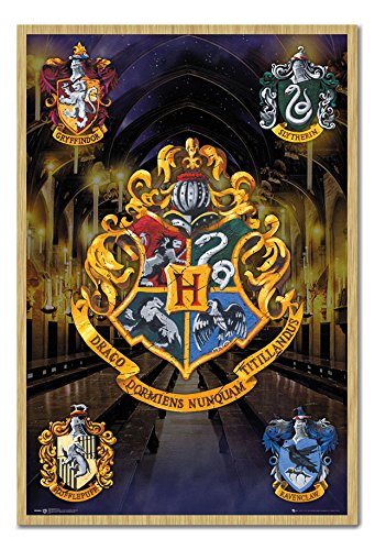 -. Title : Harry Potter Crests Poster Magnetic Notice Board Beech Framed - 96.5 x 66 cms (Approx 38 x 26 inches)