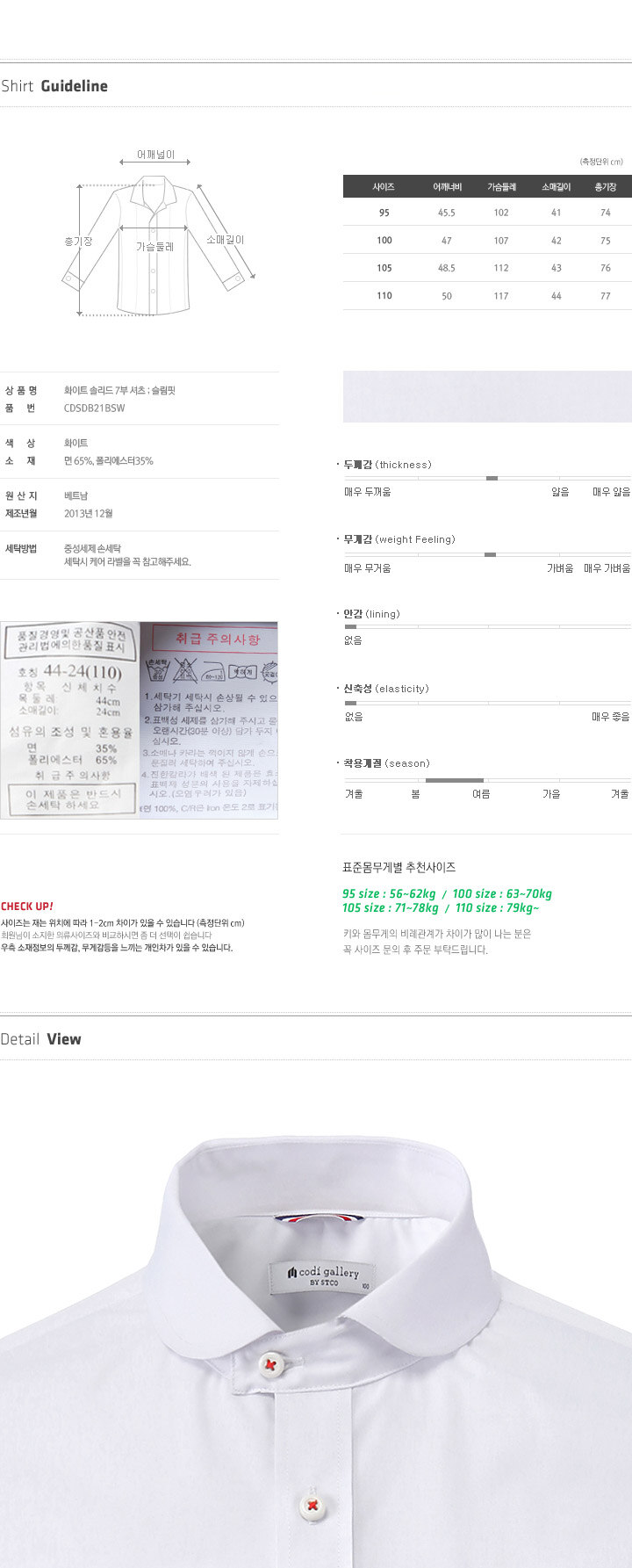 105(L):肩幅48.5/胸囲112/袖丈24/総丈76