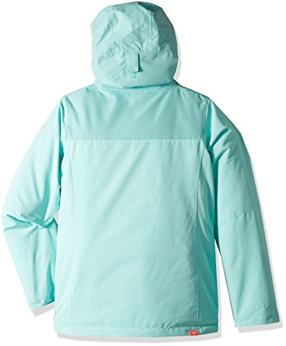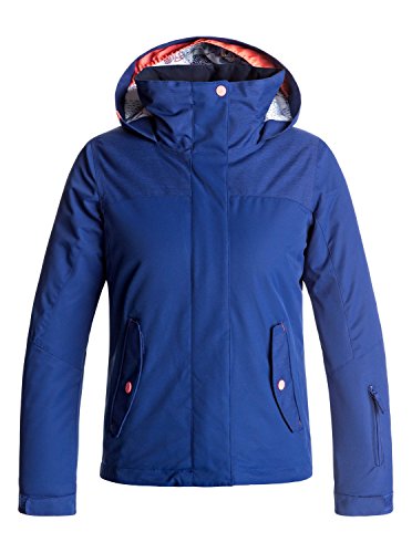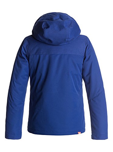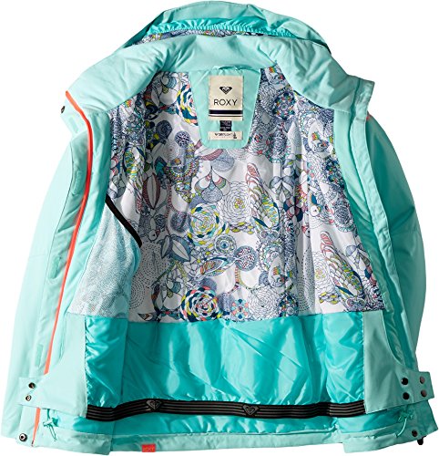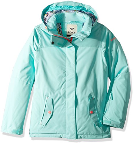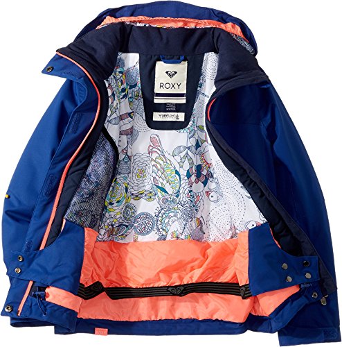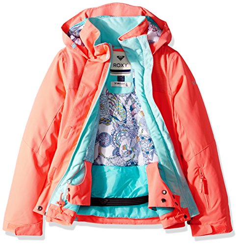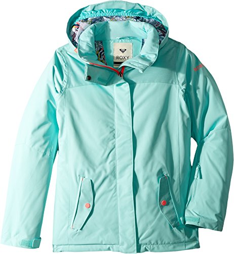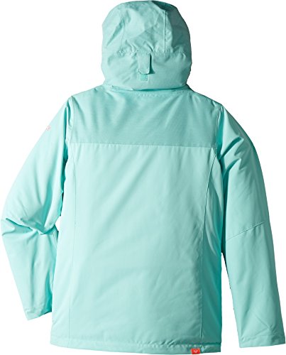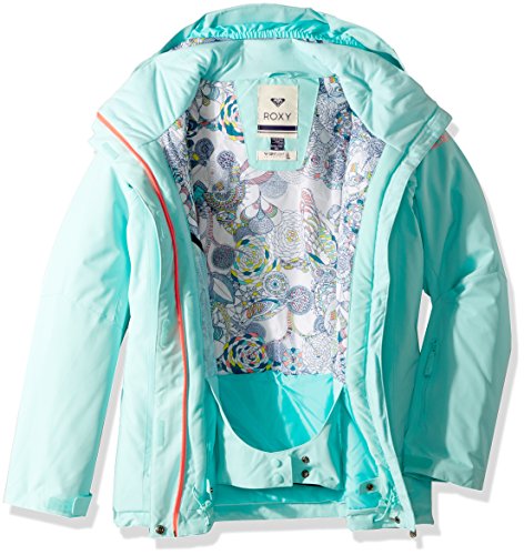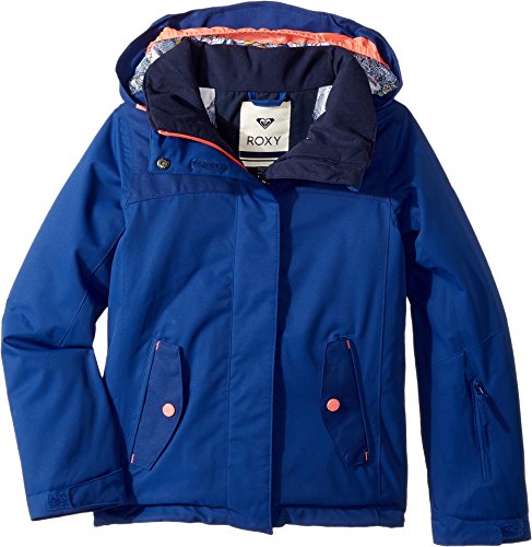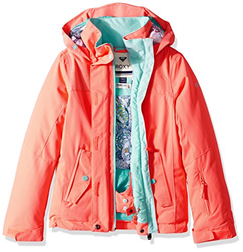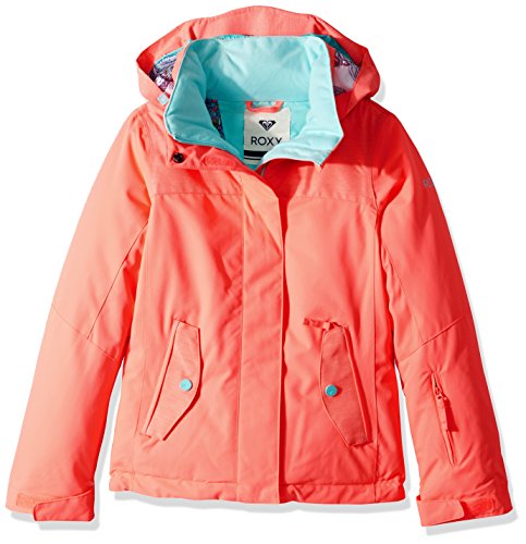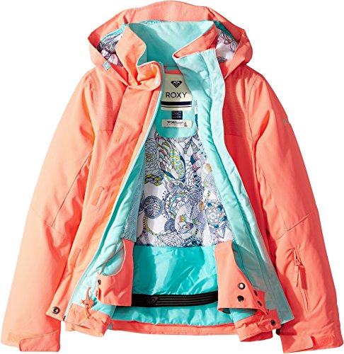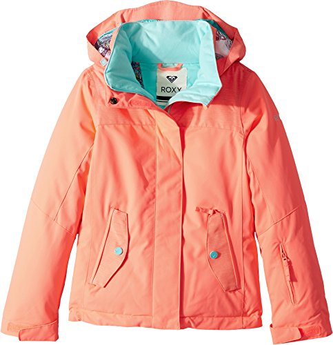 Studio : Roxy Publisher : Roxy Binding : Apparel Product Description Snow jacket for Girls 7-14. Features include: waterproofing: 10K ROXY DryFlight® technology, fabric: polyester twill weave, fit: regular, insulation: Warmflight [Fill weight: 200g body, 140g sleeves, 60g hood], lining: taffeta lining with brushed tricot panels and features: chin guard. 0