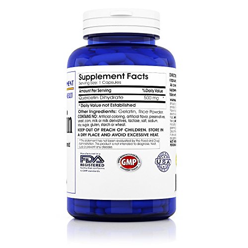 MAXIMUM STRENGTH 500MG PER CAPSULE - Our most popular supplement delivers 500mg of 100% Pure Quercetin per daily serving. Our high absorption Quercetin formula is naturally sourced and contains 500mg per capsule.*