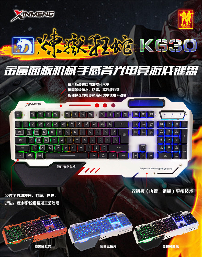 新盟K630机械手感键盘背光cf lol电脑笔记本usb发光游戏健盘有线