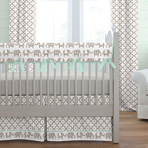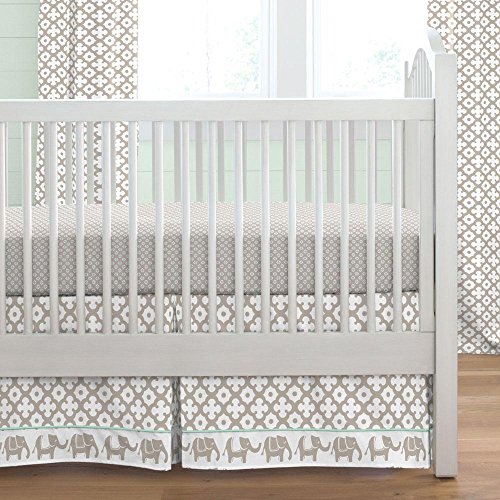 Studio : Carousel Designs Publisher : Carousel Designs Binding : Baby Product Product Description Taupe Moroccan Tile crib skirt with 4-inch trim in Taupe Marching Elephants and accent in Solid Mint. Think outside the box and get creative! Get your crib picture perfect with our box-pleat crib skirt including a 4-inch trim and accent. Finished length approximately 13-14 inches. Fits standard cribs using mattresses measuring approximately 28" x 52". Dry clean only. 0