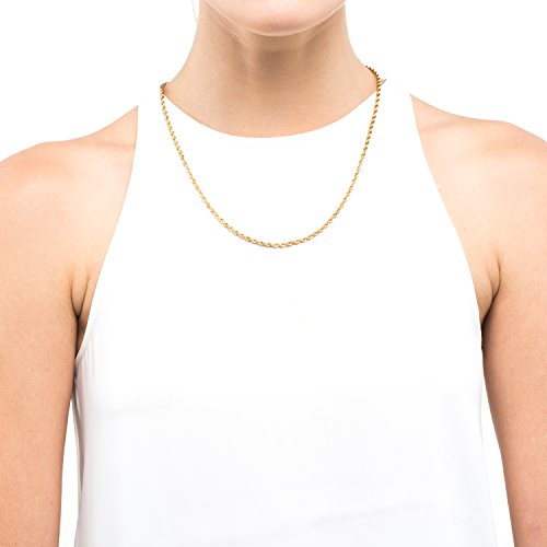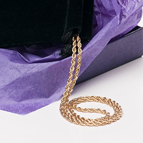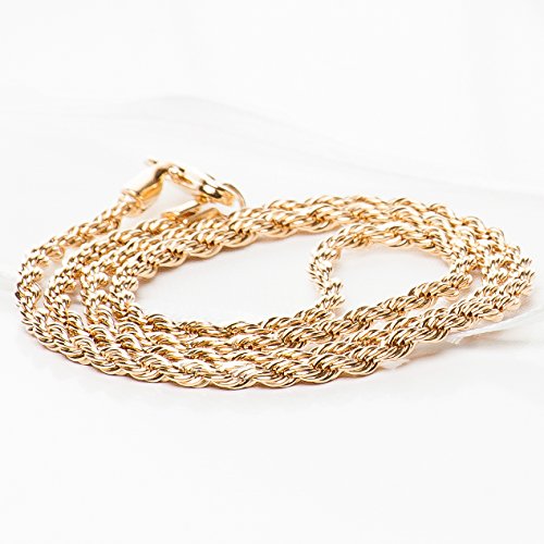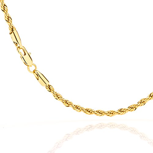 -. Title : Gold Chain Necklace 24K Gold Overlay USA Made LIFETIME WARRANTY, 30x Thicker than plated, Tarnish Resistant 3 MM All Sizes Gold pendant necklace, Men & Women Rope chain, Lobster Clasp, Look of Solid Gold