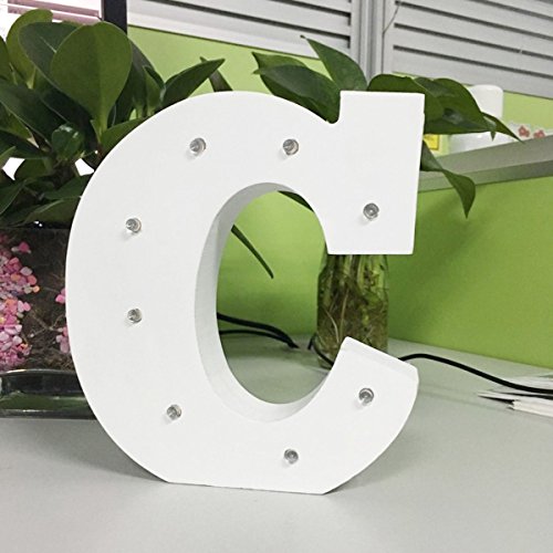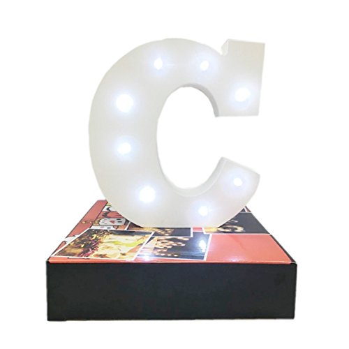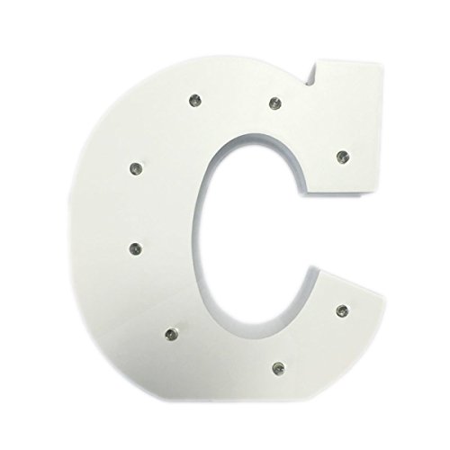 Decorative Light Up Wooden Alphabet Letter,WONFAST White Wood Marquee LED Letter Lights Sign Party Wedding Decor Battery Operated Alphabet (C)