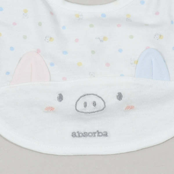 뉴픽뱀부턱받이 화사한 색상에 귀여운 돼지모양 캐릭터 자수장식 포인트로 더욱 귀엽습니다.