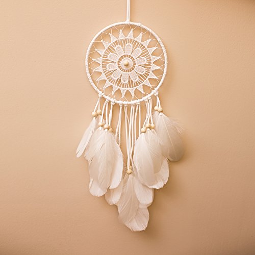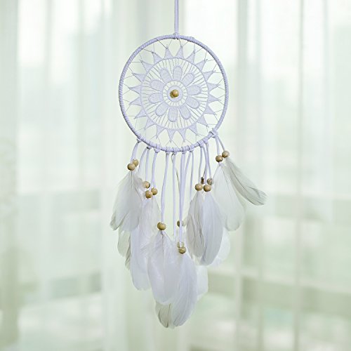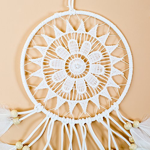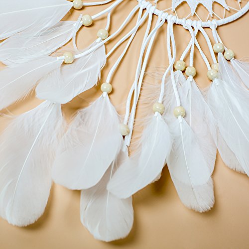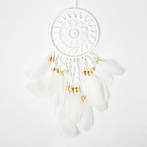 Sikolyn Natural Feather Wood Beads Indian Dream Catcher White Handmade Ornaments