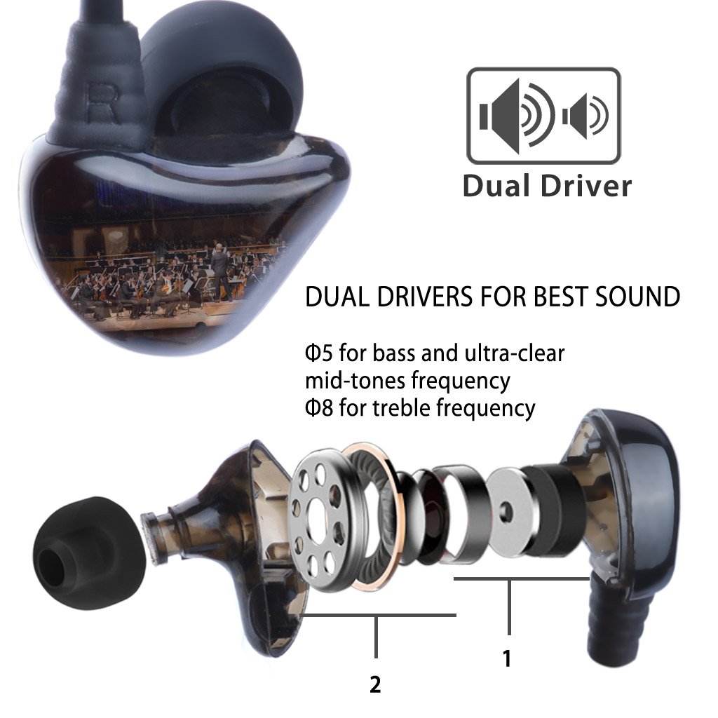 DUAL DRIVER DESIGN: Experience crystal-clear music and calls with these earphones’ two drivers (8mm,5mm) – one for bass, one for treble and ultra-clear mid-tones separately. |
