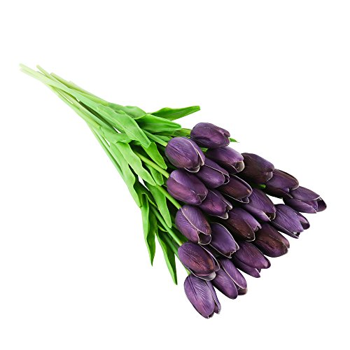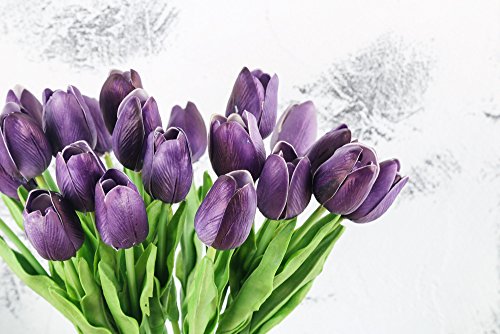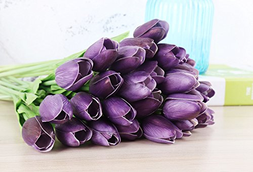 - PACKAGE AND SERVICE: 12 packs individual Purple Artificial Real Touch PU Tulips (Not a bunch of flowers). We try to guarantee that the artificial tulips you receive is complete. If there is any problem, please feel free to contact us at any time. We will give you a satisfied answer.