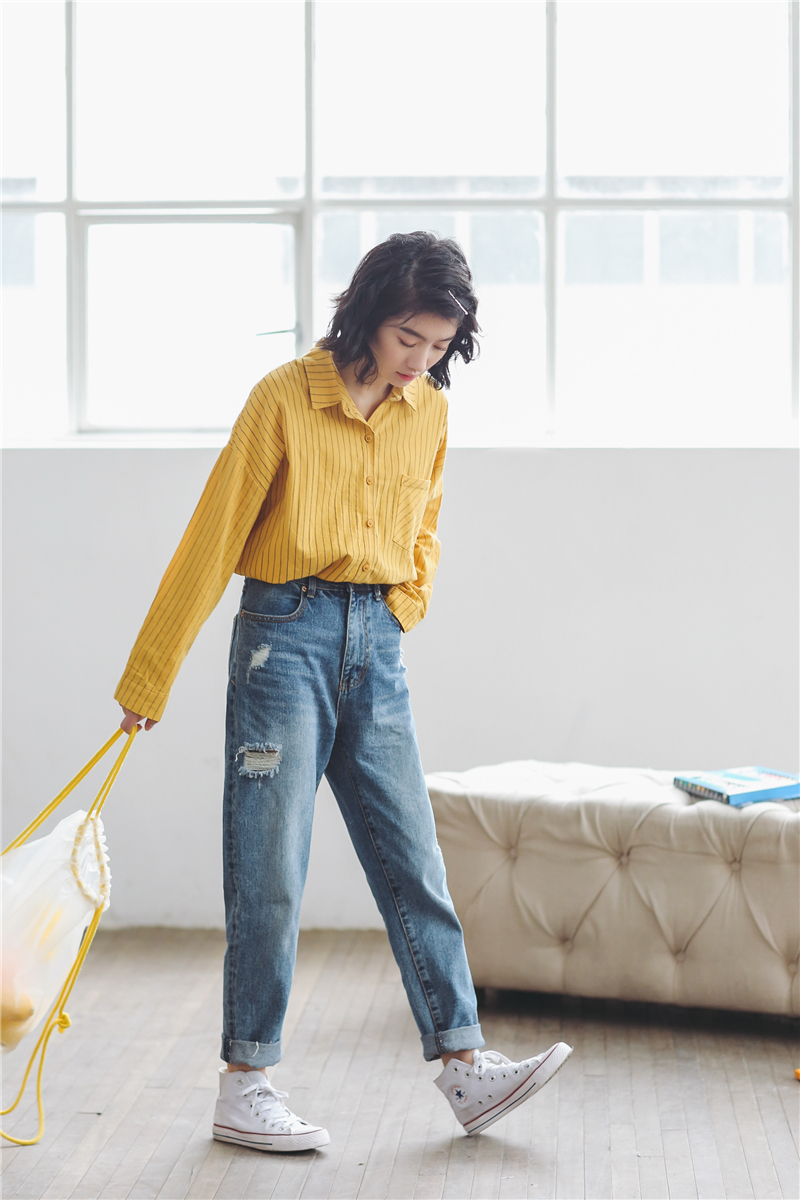 程よくゆったりとしたデザインなので動きやすく、細めのストライプはすっきりとトレンドライクな印象に仕上げてくれます。
