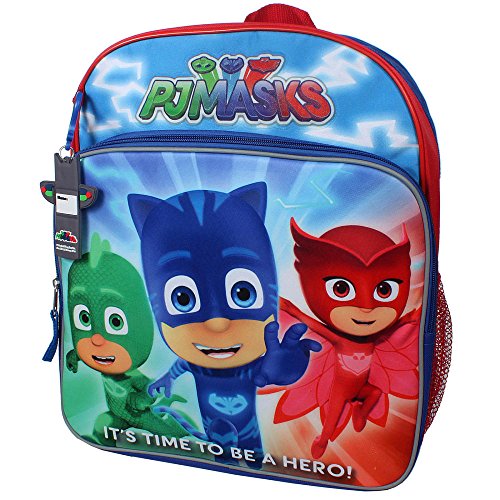 Pj masks time to be a hero backpack featuring Owlette, Gekko and Catboy. This backpack contians a padded back and strap with side mesh pockets with a double zipper for convenience.Feature