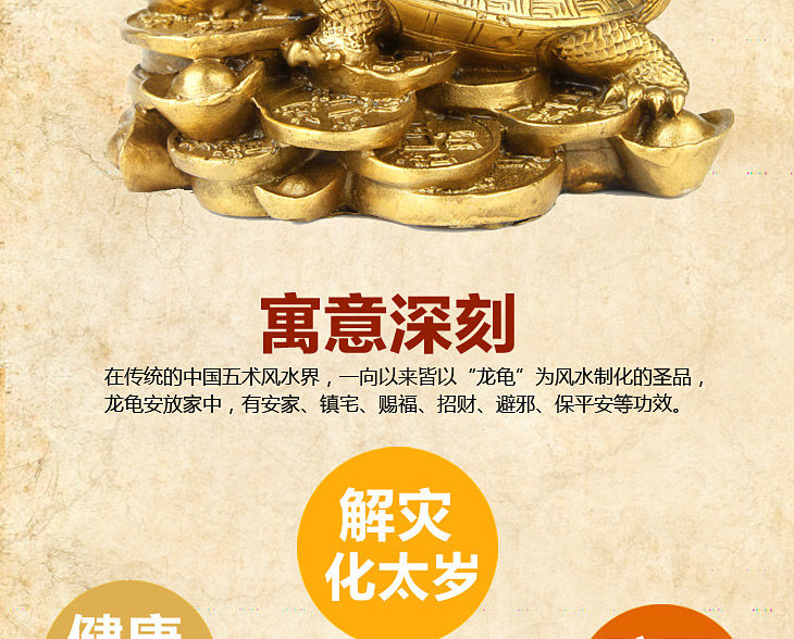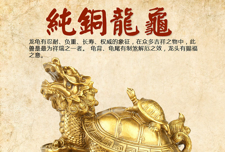 Dragon turtle big turtle called gods , symbolizes evil block disaster for the world , reducing the scourge . Similarly with longevity luck , evil town Ying-fu metaphorical . In addition to its power to subdue Jupiter , aged broken and all sorts of tangible evil spirits , but also to recruit " Ching-choi " Fluke .