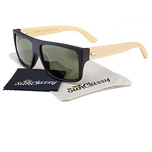 Product DescriptionThese classic Plastic and Wood frame flat top sunglasses offer 100% protection against harmful UVA/UVB rays.0