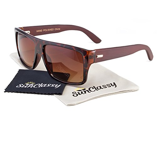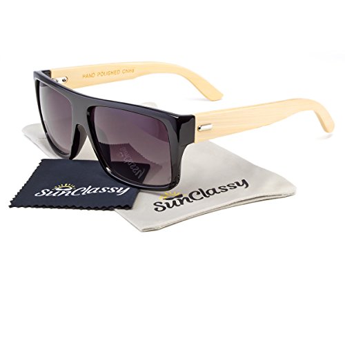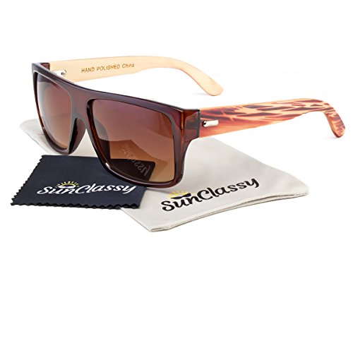 Sunclassy Plastic Front Wood Wooden Temples Frame 60mm Classic Flat Top Square Sunglasses Vinta...