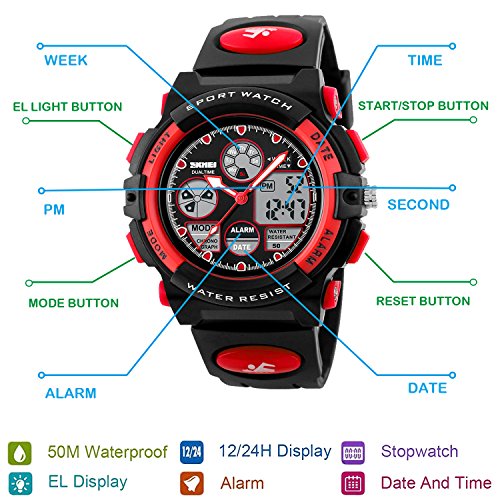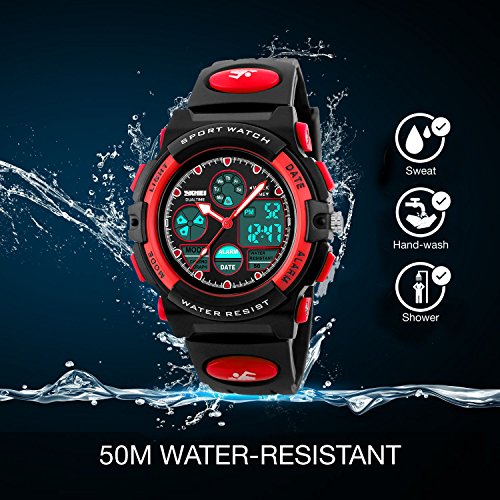 PRECISE TIME KEEPING: Original Quartz and Electronic Movement, Dual Time Zone, Analog & digital display, provide precise and accurate time keeping for boys or girls. The blue sport wristwatch time is super easy to read for kids.