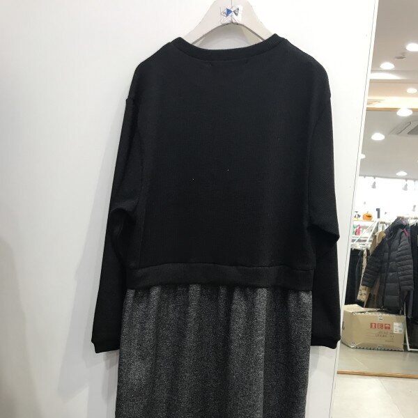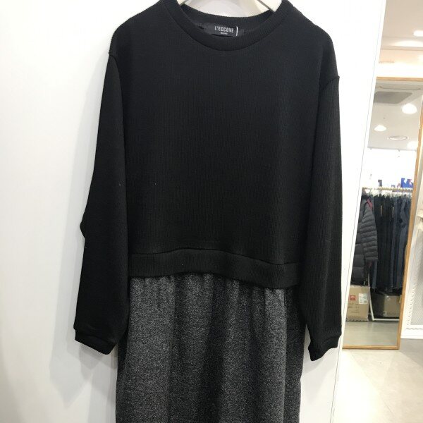 니트를 레이어드 한 것 같은 느낌의 원피스입니당 깔끔하게 입어주시기 좋아용