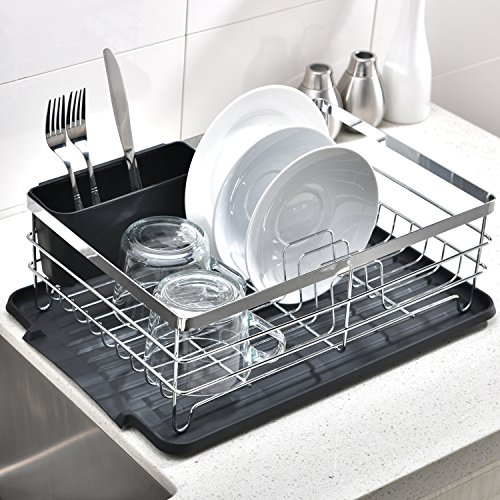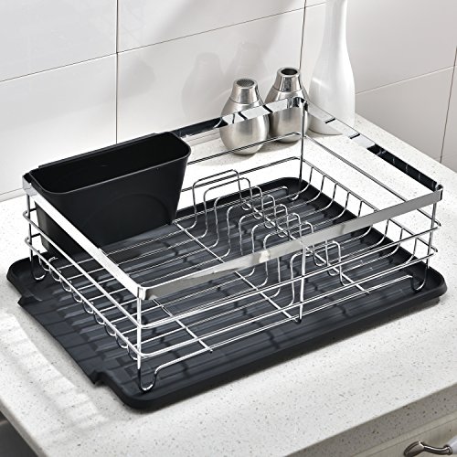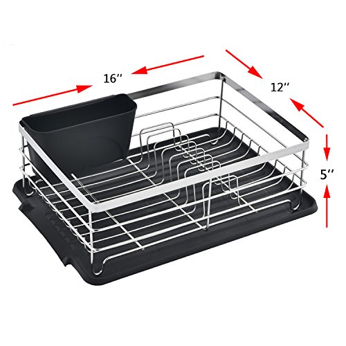Rust Proof Stainless Steel Dish Rack, Dish Drying Rack With Black Drainboard