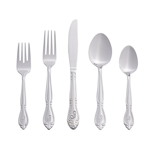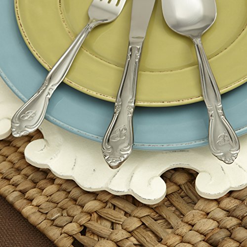 RiverRidge Home 46 Piece Monogrammed Flatware, Rose Pattern, Service for 8, S