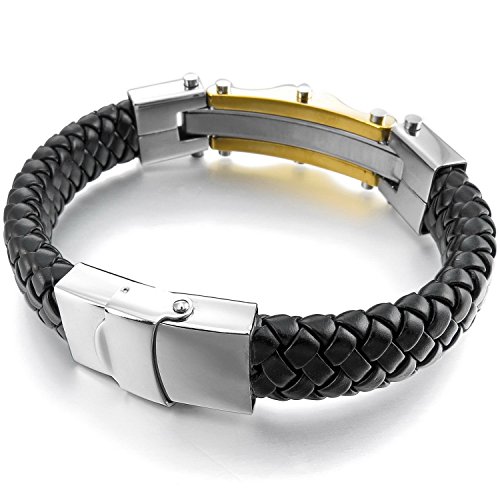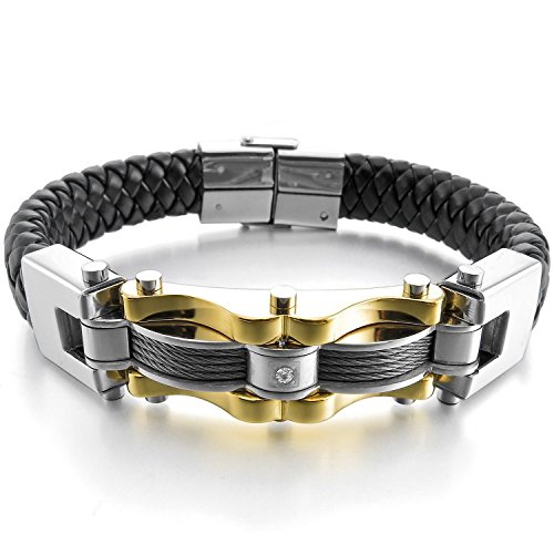 - Title : HITOP Men's Punk Stainless Steel Genuine Leather Cable CZ Cuff Bracelet Bangle