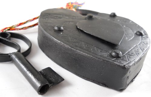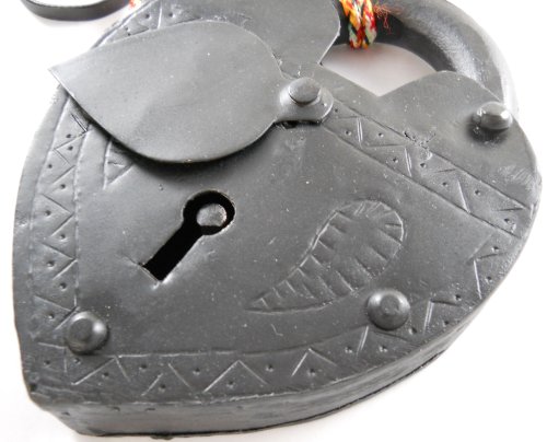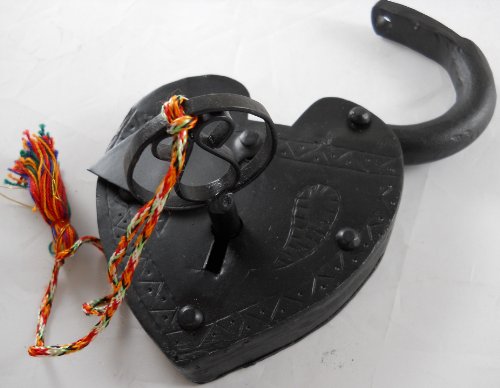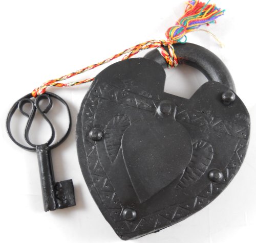 Large Antique Reproduction Heart Padlock with Key