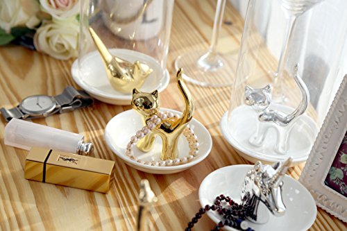 -. Feature : Crafted from great quality glazed ceramic. / Perfect size and space saving ceramic dish can hold many of rings. / Put it in the bathroom ,a perfect place to hold your necklaces, earrings, hand chain ,bracelets / Leave it by the sink to collect your rings as you wash your hands or put it on the nightstand to place your rings as you get ready for bed. / A great gift for daughters, sisters,mothers,wifes and girlfriends,even boyfriends if they have many rings.
