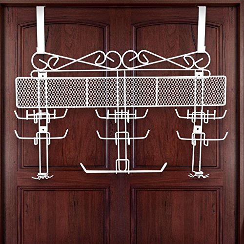 -. Feature : BEAUTIFUL & ELEGANT JEWELRY VALET - Designed with white exterior paint coating- Keeps jewelry organized and tangle-free / CONSIST OF 10 varied sections; 1 top mesh storage sections, 7 hanging hook sections, and 2 bottom swivel hooks / IDEAL for necklaces, bracelets, watches, earrings, rings, brooches, and many other jewelry pieces - Show your jewelry off with style and elegance / PROTECT & SECURE jewelry from scratches and damage - Large capacity to hold a large amount of jewelry and diversified compartments for a variety of accessories / INCLUDES over the door hooks to be hung on closet door & wall screws to be directly mounted to the walls -Measures approximately 11.75" L x 2.5" W x 14.25" H