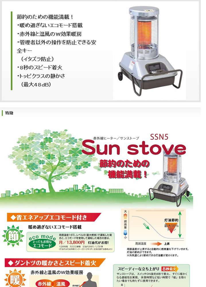 ●暖房の目安:43畳(70[[平米]])(木造)60畳(99[[平米]])(コンクリート)