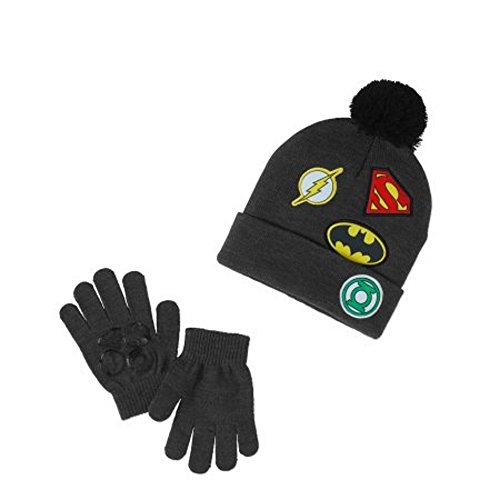 (justice league)/Accessories/Cold Weather Accessories/DIRECT FROM USA/Kid Knit Boys Justice League Patch Hat and Glove Set