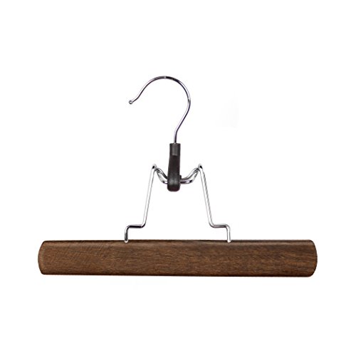 - Pack of 6 premium quality wood clamp trouser hangers with a smooth, antique mahogany finish. 9.8 inches wide. Provides organization with an elegant touch to your wardrobe decor.
