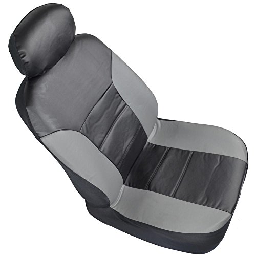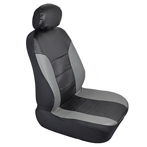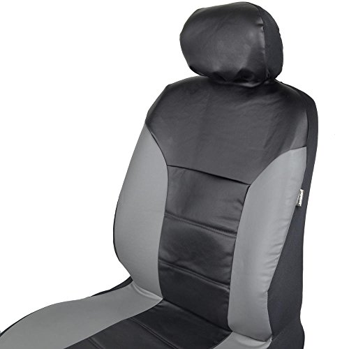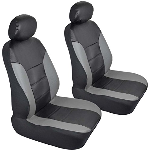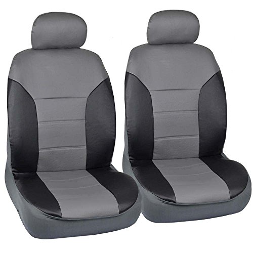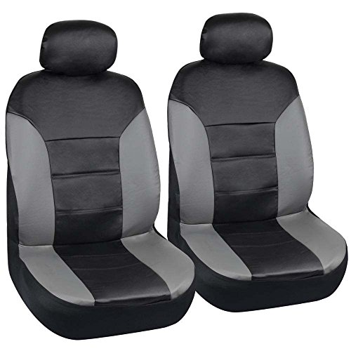 Motor Trend Two Tone PU Leather Car Seat Covers - Black Classic Accent Gray Sides - Premium Leatherette - Front Pair