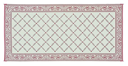 Reversible mats can be used for your RV patio, in the garden, on the beach, perfect for placing under pets exercise pens and cages, picnic and various Indoor and Outdoor spaces. 100% virgin polypropylene material makes a durable mat Breathable material does not hurt grass UV protection against sun exposure Easy clean, just spray with water or sweep. Light weight and can be folded into a very compact size for easy storage Size: 9' x 18'Feature