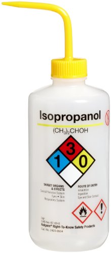 Nalgene 2425-0504 LDPE Right-To-Know Isopropanol Safety Wash Bottle, 500mL Capacity, 28mm Polypropylene Closure (Pack of 6)
