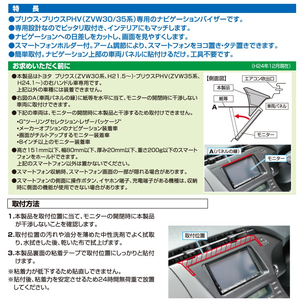 Carmate Prius dedicated (ZVW30 / 35 system) navigation visor smartphone holder black NZ533