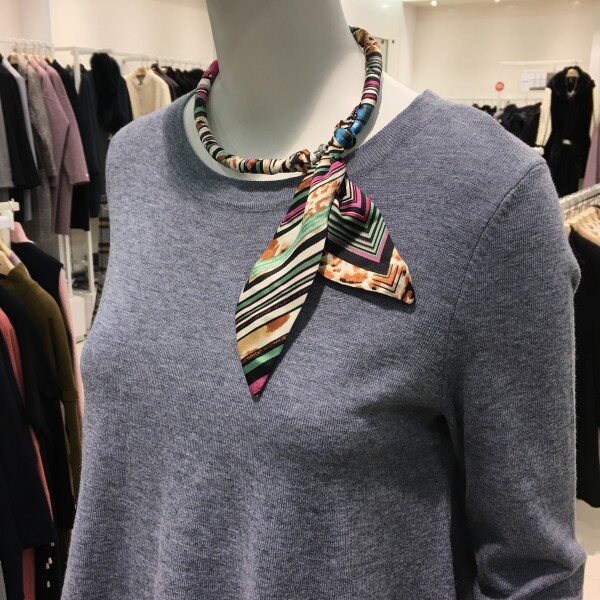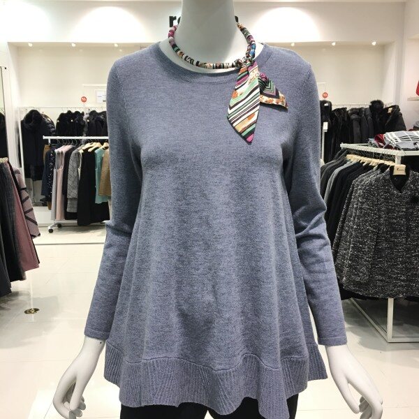 레노마레이디 머플러목걸이포인트니트티셔츠 D2CW12KP800베이직하면서도 깔끔한 디자인에 톤 다운된 컬러감으로 고급스럽게 입기 좋습니다. 머플러목걸이가 옵션으로 들어가 포인트를 주며, 밑단이 A라인으로 체형커버도 가능합니다. 메인사진이 블루컬러이며, 니트 실상품은 그레이입니다.