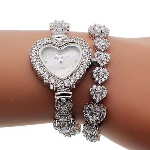 -. Feature : ♥Hermosa Watch Sterling Silver Luxury Crystal Cubic Zircon White Topaz / ♥High-class Clock Movement Imported From Janpan / ♥30m Water-proof / ♥Stainless Steel Band With Jewelry Clasp,Shape:Heart / ♥Free Shipping Accept Return At Anytime,