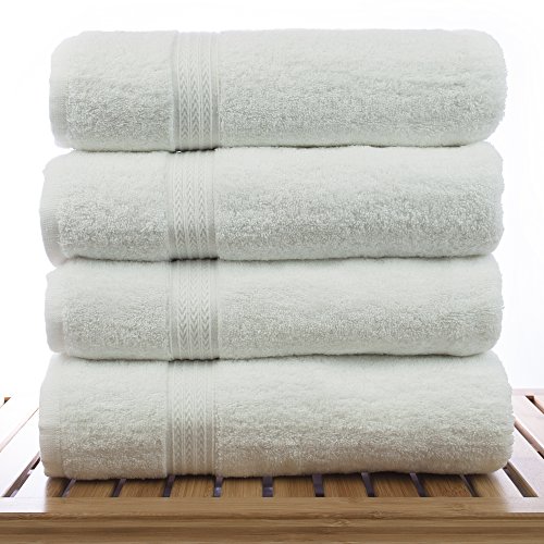 Luxury Hotel & Spa Bath Towels 100% Cotton Dobby Border (White, Set of 4)
