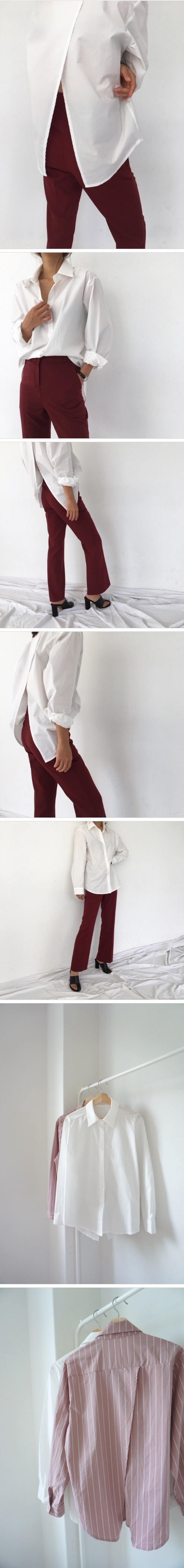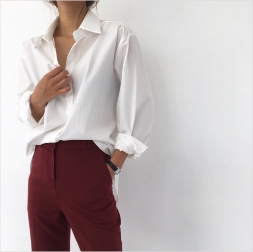 Women`s Back Slit Loose Filtting Blouse Shirts Ivory Pink