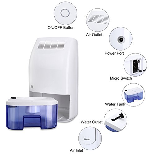 and fungus by removing 300ml moisture per day with 700ML water tank capacity. It will turn off automatically when the tank is full,