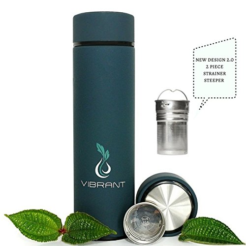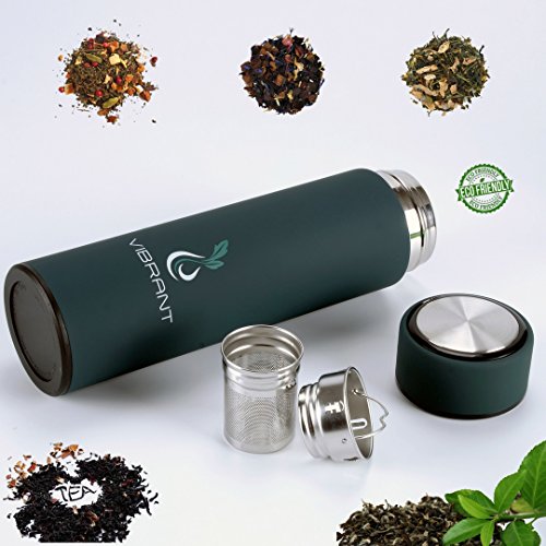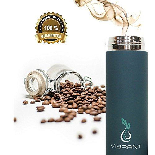 VIBRANT ALL IN ONE Travel Mug - TEA INFUSER Bottle - Insulated HOT COFFEE THERMOS - Cold FRUIT INFUSED Water Flask - Food grade LEAK PROOF Tumbler Double wall Stainless Steel 16.9 oz