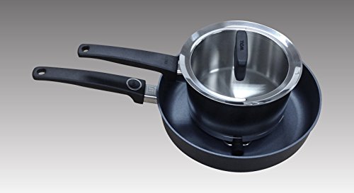 Studio : Frieling USA Publisher : Frieling USA Binding : Kitchen Product Description Frieling recognizes that people don't need just another product - they need a solution to a problem - a fresh solution!? Finding "fresh solutions" has been the Frieling mission for 26 years.? The Frieling team is passionate about answering the need with innovative coffee/tea accessories, cookware, bakeware, serve ware, food storage, decalcifies, gadgets, food prep, tabletop and much more.? Frieling synergistically integrates brands of distinction from around the world into one convenient place to shop. Frieling has created the perfect way to organize lids for your cookware. The Lid Master Plus is the ultimate solution for your pantry, cupboards and kitchen. No more digging through piles of unorganized lids wasting time looking for the right size lid for your pots. Light weight and easy to use and fit any diameter, material and shape of lid, pot or pan. Simply place the Lid Master Plus between lids to store them in a neat vertical tower. Set includes 2 Lid Master Plus units. Measures approximately 6 inches in length by 6 inches in width by 1 1/2 inches in height. The Lid Master Plus will allow you to stay more organized and will save space all in one. It also can be used as a double boiler for melting chocolate and creating puddings and desserts. Just place the Lid Master Plus in the bottom of your pan, add water and put a smaller one on top. The Lid Master Plus can withstand heat up to 400 Degree and is dishwasher safe. 0