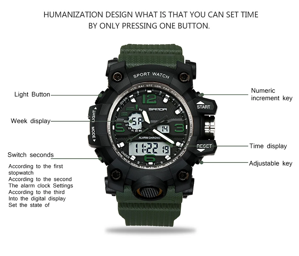 Feature:Back Light,Alarm,Water Resistant,Shock Resistant,Stop Watch,Complete Calendar,Swim,Multiple Time Zone,Week Display,Chronograph,Auto Date,LED display,Diver