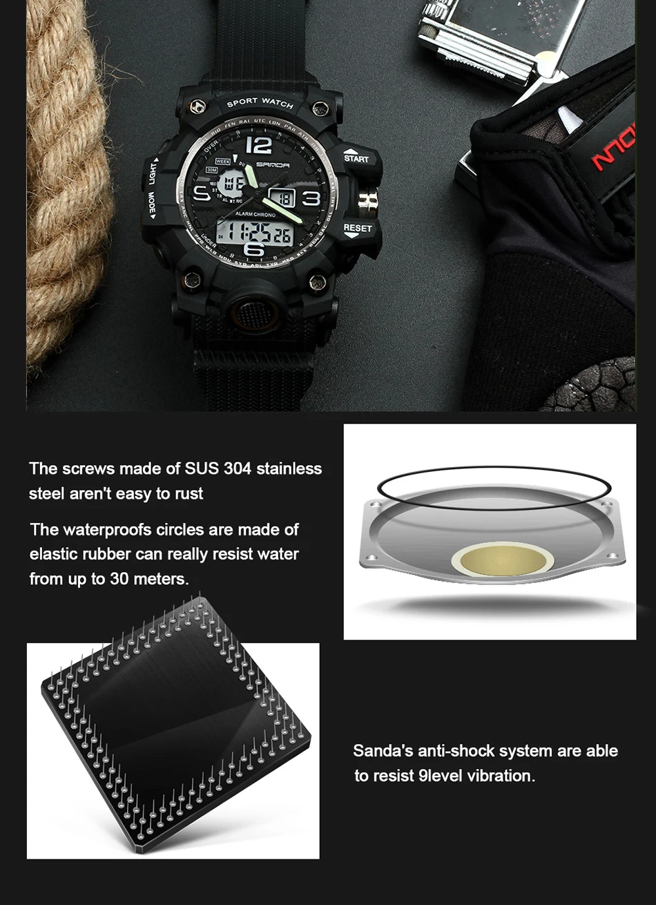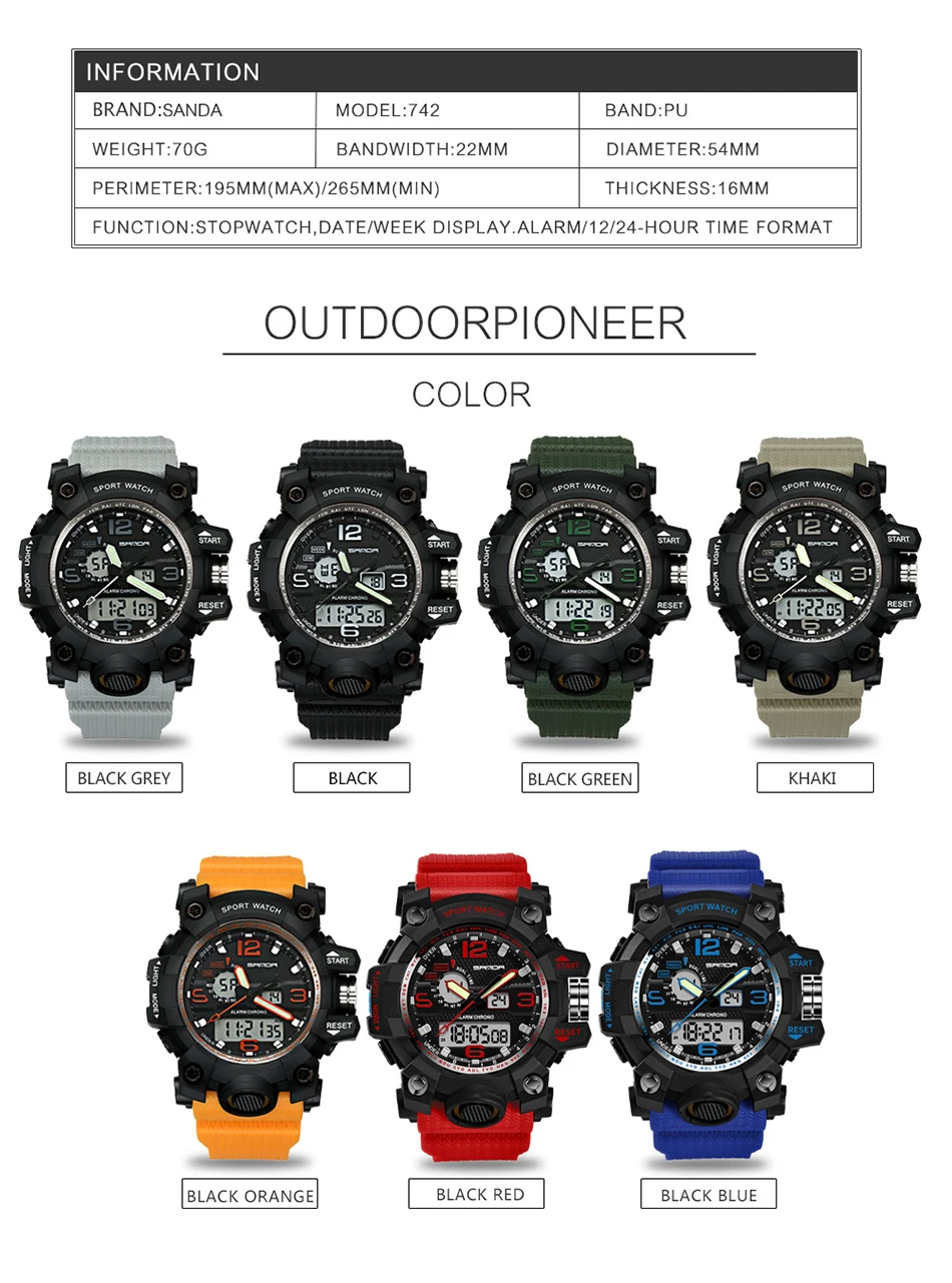 Item Type:mens watches top brand luxury sanda 742 military watch men Sport Watch