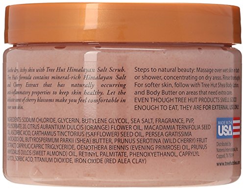 -. Binding : Health and Beauty -. Brand : Tree Hut -. EAN : 0075371004346 -. Feature : Himalayan Sea Salt grains contains 84 minerals and trace elements to help soothe inflamed skin while removing dead skin cells / Infused with Wild Cherry Fruit Extract for skin hydration, protection and anti-aging / Made with certified Organic Shea Butter for skin repairing and moisturizing, anti-aging and promoting elasticity / Formulated with Red Clay for skin conditioning / Enjoy the delicate scent of cherry blossoms -. IsAdultProduct : 0 -. Label : Tree Hut -. Manufacturer : Tree Hut -. MPN : Tre-4565 -. NumberOfItems : 1 -. PackageQuantity : 1 -. PartNumber : Tre-4565 -. ProductGroup : Beauty -. ProductTypeName : BEAUTY -. PublicationDate : 2014-02-18 -. Publisher : Tree Hut -. ReleaseDate : 2014-02-11 -. Studio : Tree Hut -. Title : Tree Hut Himalayan Salt Scrub, Cherry Blossom, 15 Ounce -. UPC : 075371004346