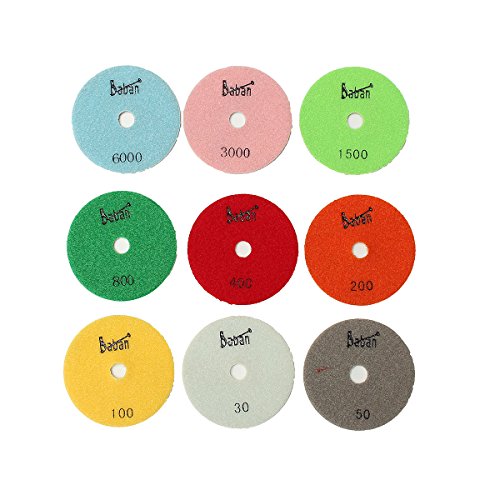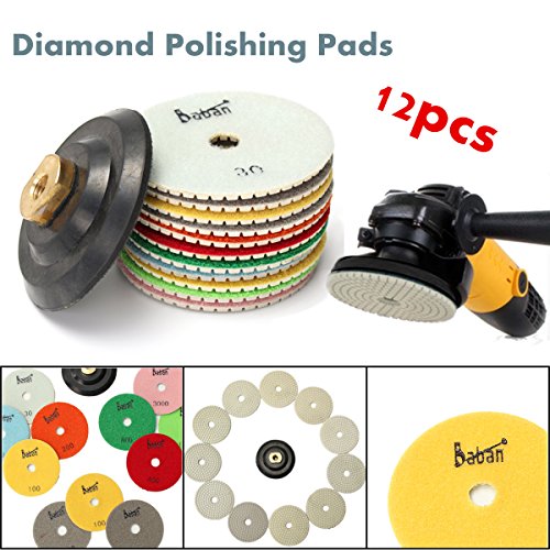 Baban Diamond Polishing Pads, 4'' Wet Polishing Pads Set of 11+1 Backer Pad Ideal For Granite, Concrete, Stone Polishing(Upgrade Version)