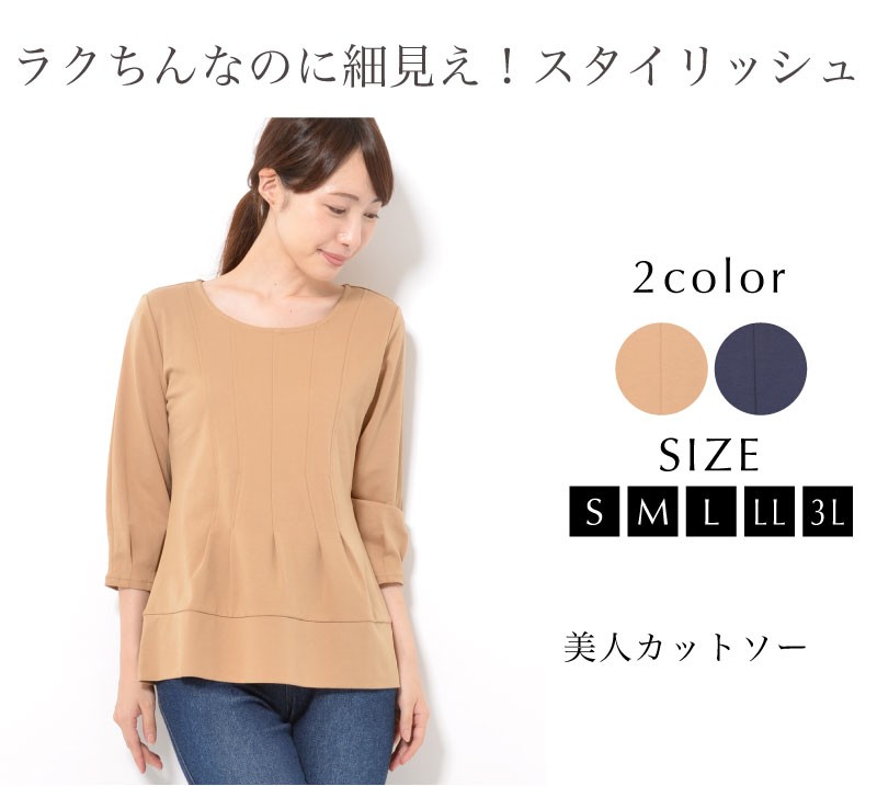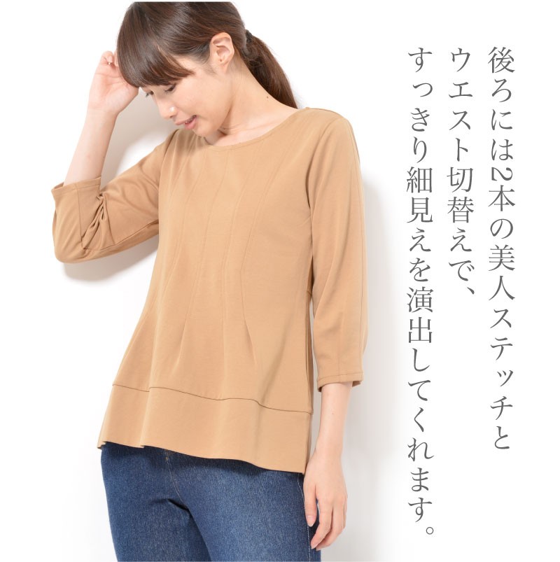付かず離れずの程よい余裕があるので、体型をカバーしながら、ラクに着られます。