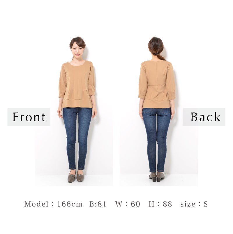 後ろには2本の美人ステッチとウエスト切替えで、すっきり細見えを演出してくれます。