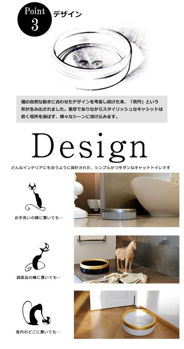 | どんなインテリアにも合うように設計されたキャットトイレです。 |