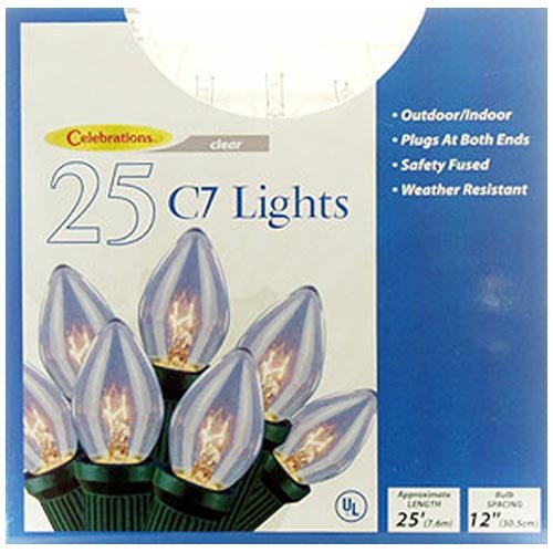 Celebrations Lighting Indoor/Outdoor 25 C7 String Light Set, Clear Bulbs