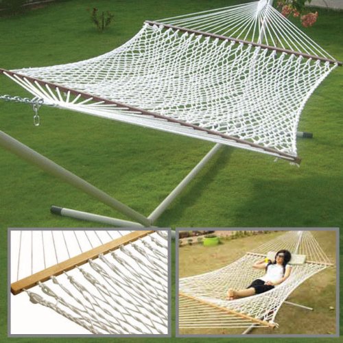- Title : AGPtek® 78" Cotton Double Wide Outdoor Patio Lawn Garden Hammock with Solid Wood Spreader Bar