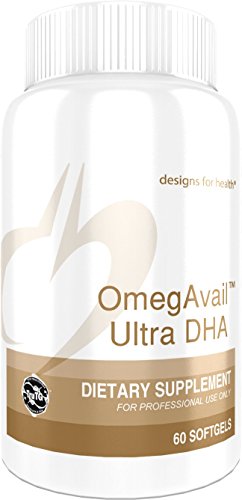 OmegAvail Ultra DHA contains highly concentrated DHA (docosahexaenoic acid) from fish oil in its natural TG (triglyceride) form. As with all Designs for Health TruTG fish oil products, OmegAvail Ultra DHA is comprised of a minimum 90% natural TG-bound omega-3 oils. Each softgel provides 500 mg DHA + 110 mg EPA for optimal DHA status. As always, our fish oils are molecularly distilled and filtered to ensure purity and to maximize the removal of heavy metals, pesticides, solvents, PCBs, and other contaminants.* Made with non-GMO ingredients.